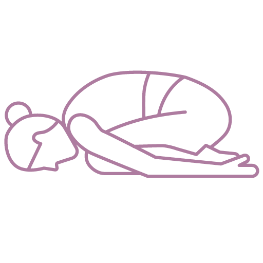 Garbhasana relaxes the spine, neck and stretches the back muscles. In this position, the knees are supported and the forehead is placed lightly on the floor while the arms are relaxed at the sides.